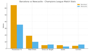 B] Barcelona’s midfield, though not at full strength, was instrumental in setting the tempo following Newcastle’s initial onslaught. Pedri and Frenkie de Jong displayed calm under pressure to ensure visitors kept possession without succumbing to Newcastle. Possession statistics back this up; Barcelona held around 64-66% compared with just 35-36% for Newcastle.